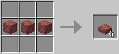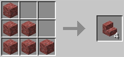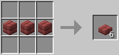 辰砂レンガ | 辰砂レンガの階段 × 1 辰砂レンガのハーフ × 2 辰砂レンガの塀 × 1 模様入りの辰砂 × 1 |