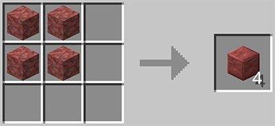 磨かれた辰砂 | 磨かれた辰砂の階段 × 1 磨かれた辰砂のハーフ × 2 磨かれた辰砂の塀 × 1 辰砂レンガ × 1 辰砂レンガの階段 × 1 辰砂レンガのハーフ × 2 辰砂レンガの塀 × 1 模様入りの辰砂 × 1 |