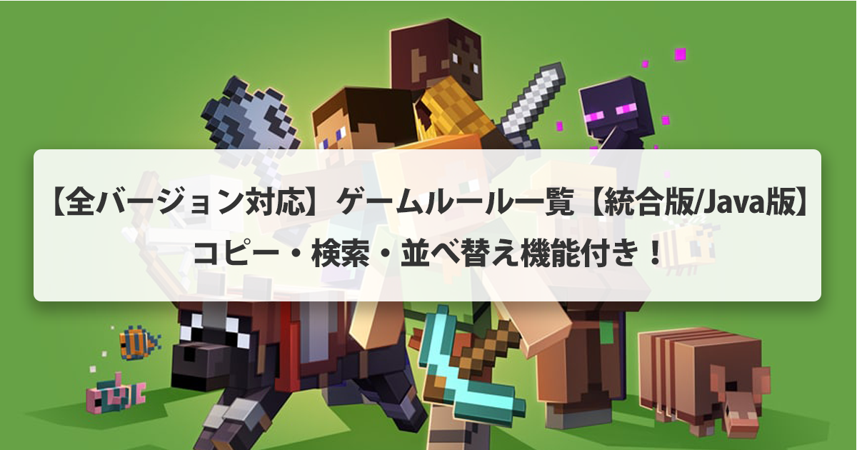 マイクラ統合版、Java版におけるゲームルールについて解説します。以下の3つのバージョンに対応しています。