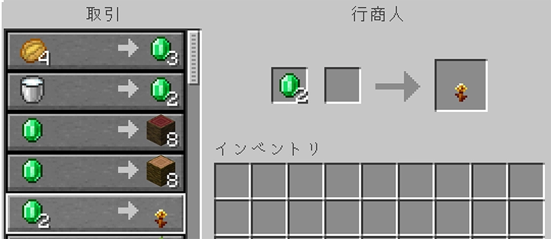 行商人との取引でも入手できます。交易に必要なアイテムは以下の通りです。