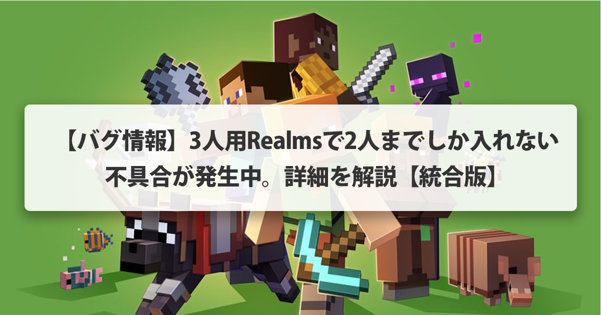 【バグ情報】3人用Realmsで2人までしか入れない不具合が発生中。詳細を解説【統合版】