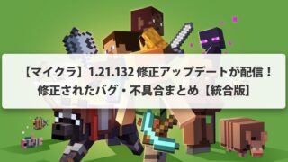 アップデート 【マイクラ】1.21.132 修正アップデートが配信!修正されたバグ・不具合まとめ【統合版】 マイクラ統合版の最新バージョン「ver1.21.132」が配信されました。前に配信されたver1.21.130(Xへ)で発生していたバグ/不具合の修正... 2026.01.09 アップデート