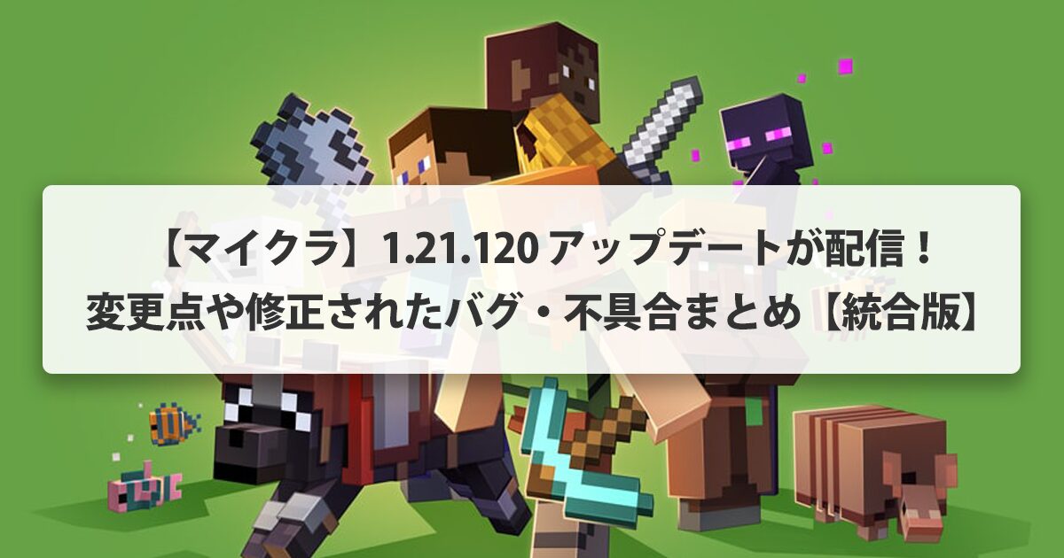 マイクラ統合版の最新バージョン「ver1.21.120」が配信されました。様々な変更やバグ修正などの中型アップデートとなっています。